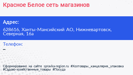 Красное & Белое, сеть магазинов по адресу 628616, Ханты-Мансийский АО, Нижневартовск, Северная, 16а в дальнейшем Организация, размещена в следующих категориях: