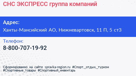 СНС ЭКСПРЕСС, группа компаний по адресу Ханты-Мансийский АО, Нижневартовск, 11 П, 5 ст3 в дальнейшем Организация, размещена в следующих категориях: