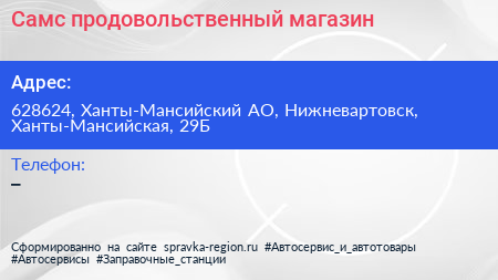 Самс, продовольственный магазин по адресу 628624, Ханты-Мансийский АО, Нижневартовск, Ханты-Мансийская, 29Б в дальнейшем Организация, размещена в следующих категориях: