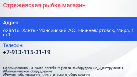 Стрежевская рыбка, магазин по адресу 628616, Ханты-Мансийский АО, Нижневартовск, Мира, 1 ст1 в дальнейшем Организация, размещена в следующих категориях:
