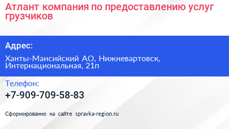 Атлант, компания по предоставлению услуг грузчиков по адресу Ханты-Мансийский АО, Нижневартовск, Интернациональная, 21п в дальнейшем Организация, размещена в следующих категориях: