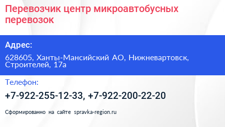 Перевозчик, центр микроавтобусных перевозок по адресу 628605, Ханты-Мансийский АО, Нижневартовск, Строителей, 17а в дальнейшем Организация, размещена в следующих категориях: