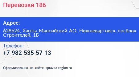 Перевозки 186 по адресу 628624, Ханты-Мансийский АО, Нижневартовск, посёлок Строителей, 1Б в дальнейшем Организация, размещена в следующих категориях: