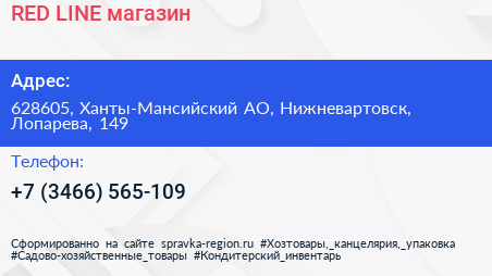 RED LINE, магазин по адресу 628605, Ханты-Мансийский АО, Нижневартовск, Лопарева, 149 в дальнейшем Организация, размещена в следующих категориях: