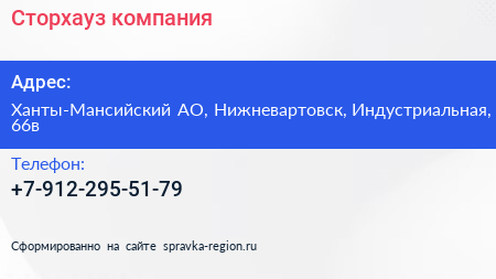 Сторхауз, компания по адресу Ханты-Мансийский АО, Нижневартовск, Индустриальная, 66в в дальнейшем Организация, размещена в следующих категориях: