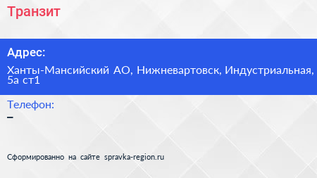 Транзит по адресу Ханты-Мансийский АО, Нижневартовск, Индустриальная, 5а ст1 в дальнейшем Организация, размещена в следующих категориях: