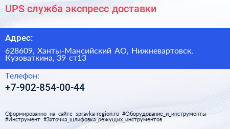 UPS, служба экспресс-доставки по адресу 628609, Ханты-Мансийский АО, Нижневартовск, Кузоваткина, 39 ст13 в дальнейшем Организация, размещена в следующих категориях:
