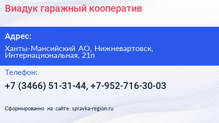 Виадук, гаражный кооператив по адресу Ханты-Мансийский АО, Нижневартовск, Интернациональная, 21п в дальнейшем Организация, размещена в следующих категориях: