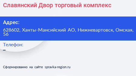 Славянский Двор, торговый комплекс по адресу 628602, Ханты-Мансийский АО, Нижневартовск, Омская, 56 в дальнейшем Организация, размещена в следующих категориях: