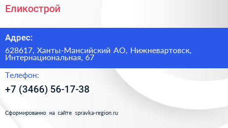 Еликострой по адресу 628617, Ханты-Мансийский АО, Нижневартовск, Интернациональная, 67 в дальнейшем Организация, размещена в следующих категориях: