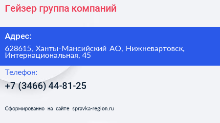 Гейзер, группа компаний по адресу 628615, Ханты-Мансийский АО, Нижневартовск, Интернациональная, 45 в дальнейшем Организация, размещена в следующих категориях: