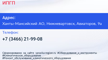 ИПГП по адресу Ханты-Мансийский АО, Нижневартовск, Авиаторов, 9а в дальнейшем Организация, размещена в следующих категориях:
