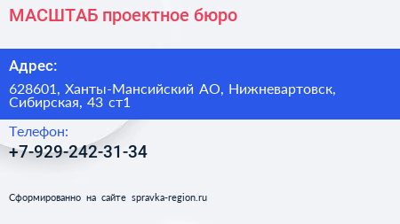 МАСШТАБ, проектное бюро по адресу 628601, Ханты-Мансийский АО, Нижневартовск, Сибирская, 43 ст1 в дальнейшем Организация, размещена в следующих категориях: