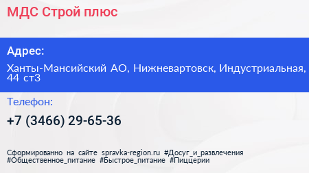 МДС-Строй плюс по адресу Ханты-Мансийский АО, Нижневартовск, Индустриальная, 44 ст3 в дальнейшем Организация, размещена в следующих категориях: