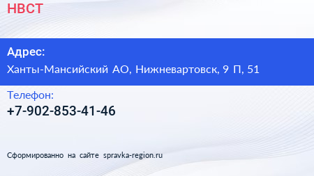 НВСТ по адресу Ханты-Мансийский АО, Нижневартовск, 9 П, 51 в дальнейшем Организация, размещена в следующих категориях: