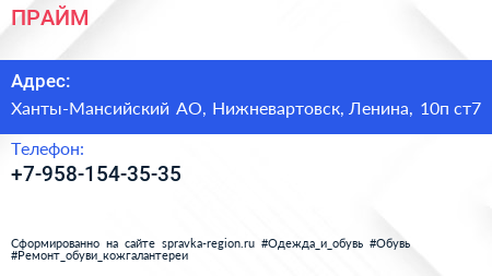 ПРАЙМ по адресу Ханты-Мансийский АО, Нижневартовск, Ленина, 10п ст7 в дальнейшем Организация, размещена в следующих категориях: