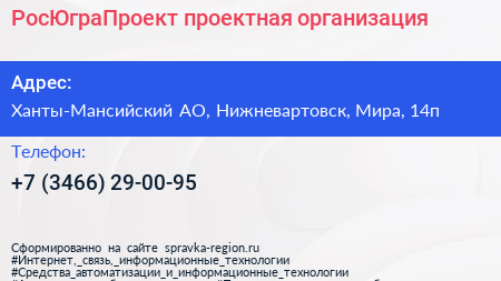 РосЮграПроект, проектная организация по адресу Ханты-Мансийский АО, Нижневартовск, Мира, 14п в дальнейшем Организация, размещена в следующих категориях: