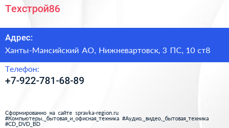 Техстрой86 по адресу Ханты-Мансийский АО, Нижневартовск, 3 ПС, 10 ст8 в дальнейшем Организация, размещена в следующих категориях: