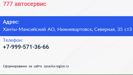 777, автосервис по адресу Ханты-Мансийский АО, Нижневартовск, Северная, 35 ст3 в дальнейшем Организация, размещена в следующих категориях: