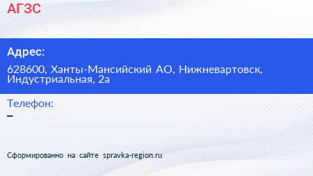 АГЗС по адресу 628600, Ханты-Мансийский АО, Нижневартовск, Индустриальная, 2а в дальнейшем Организация, размещена в следующих категориях: