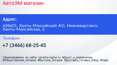 АвтоЭМ, магазин по адресу 628605, Ханты-Мансийский АО, Нижневартовск, Ханты-Мансийская, 2 в дальнейшем Организация, размещена в следующих категориях: