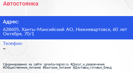 Автостоянка по адресу 628605, Ханты-Мансийский АО, Нижневартовск, 60 лет Октября, 70/1 в дальнейшем Организация, размещена в следующих категориях: