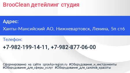 BrooClean, детейлинг-студия по адресу Ханты-Мансийский АО, Нижневартовск, Ленина, 5п ст6 в дальнейшем Организация, размещена в следующих категориях: