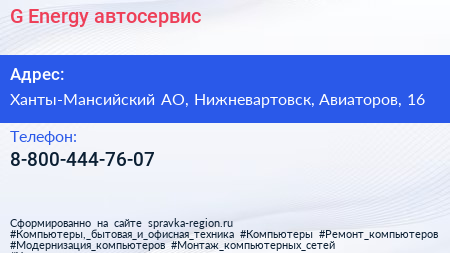 G-Energy, автосервис по адресу Ханты-Мансийский АО, Нижневартовск, Авиаторов, 16 в дальнейшем Организация, размещена в следующих категориях: