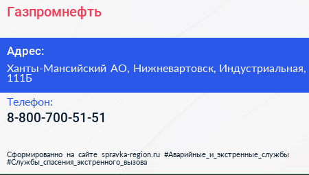Газпромнефть по адресу Ханты-Мансийский АО, Нижневартовск, Индустриальная, 111Б в дальнейшем Организация, размещена в следующих категориях: