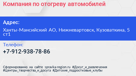 Компания по отогреву автомобилей по адресу Ханты-Мансийский АО, Нижневартовск, Кузоваткина, 5 ст1 в дальнейшем Организация, размещена в следующих категориях: