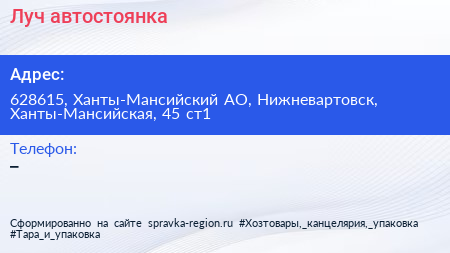 Луч, автостоянка по адресу 628615, Ханты-Мансийский АО, Нижневартовск, Ханты-Мансийская, 45 ст1 в дальнейшем Организация, размещена в следующих категориях: