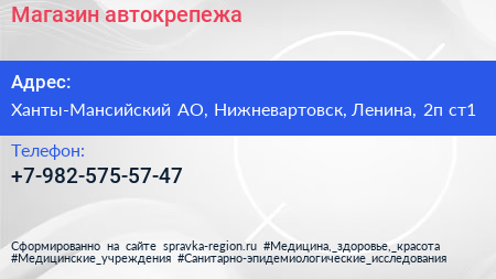 Магазин автокрепежа по адресу Ханты-Мансийский АО, Нижневартовск, Ленина, 2п ст1 в дальнейшем Организация, размещена в следующих категориях: