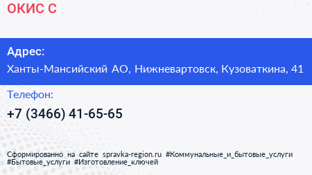 ОКИС-С по адресу Ханты-Мансийский АО, Нижневартовск, Кузоваткина, 41 в дальнейшем Организация, размещена в следующих категориях: