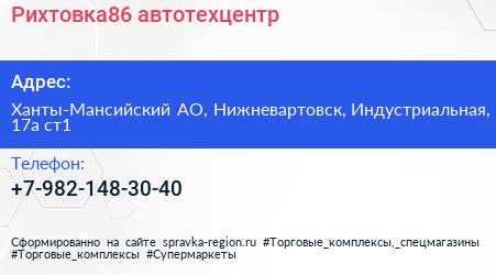 Рихтовка86, автотехцентр по адресу Ханты-Мансийский АО, Нижневартовск, Индустриальная, 17а ст1 в дальнейшем Организация, размещена в следующих категориях: