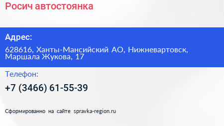 Росич, автостоянка по адресу 628616, Ханты-Мансийский АО, Нижневартовск, Маршала Жукова, 17 в дальнейшем Организация, размещена в следующих категориях: