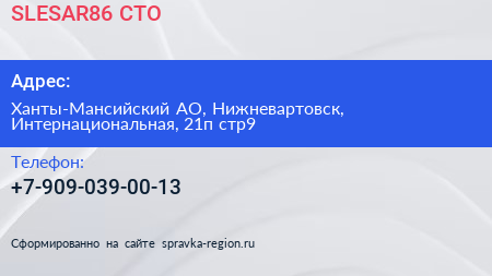 SLESAR86, СТО по адресу Ханты-Мансийский АО, Нижневартовск, Интернациональная, 21п стр9 в дальнейшем Организация, размещена в следующих категориях: