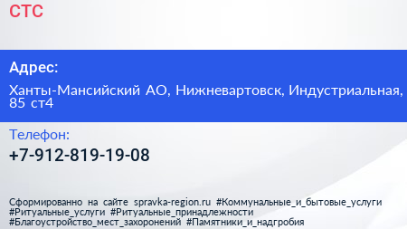 СТС по адресу Ханты-Мансийский АО, Нижневартовск, Индустриальная, 85 ст4 в дальнейшем Организация, размещена в следующих категориях:
