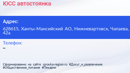 ЮСС, автостоянка по адресу 628615, Ханты-Мансийский АО, Нижневартовск, Чапаева, 42а в дальнейшем Организация, размещена в следующих категориях: