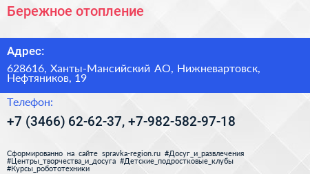 Бережное отопление по адресу 628616, Ханты-Мансийский АО, Нижневартовск, Нефтяников, 19 в дальнейшем Организация, размещена в следующих категориях: