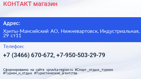 КОНТАКТ, магазин по адресу Ханты-Мансийский АО, Нижневартовск, Индустриальная, 29 ст11 в дальнейшем Организация, размещена в следующих категориях: