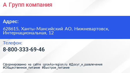 А-Групп, компания по адресу 628615, Ханты-Мансийский АО, Нижневартовск, Интернациональная, 12 в дальнейшем Организация, размещена в следующих категориях: