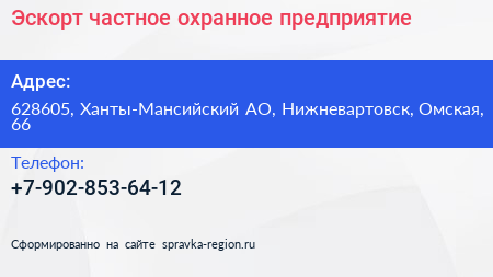 Эскорт, частное охранное предприятие по адресу 628605, Ханты-Мансийский АО, Нижневартовск, Омская, 66 в дальнейшем Организация, размещена в следующих категориях: