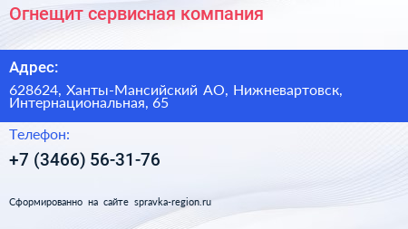 Огнещит, сервисная компания по адресу 628624, Ханты-Мансийский АО, Нижневартовск, Интернациональная, 65 в дальнейшем Организация, размещена в следующих категориях: