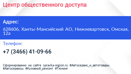 Центр общественного доступа по адресу 628606, Ханты-Мансийский АО, Нижневартовск, Омская, 12а в дальнейшем Организация, размещена в следующих категориях: