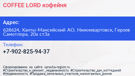 COFFEE LORD, кофейня по адресу 628624, Ханты-Мансийский АО, Нижневартовск, Героев Самотлора, 20а ст3а в дальнейшем Организация, размещена в следующих категориях: