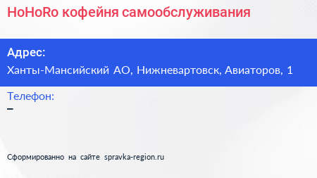 HoHoRo, кофейня самообслуживания по адресу Ханты-Мансийский АО, Нижневартовск, Авиаторов, 1 в дальнейшем Организация, размещена в следующих категориях: