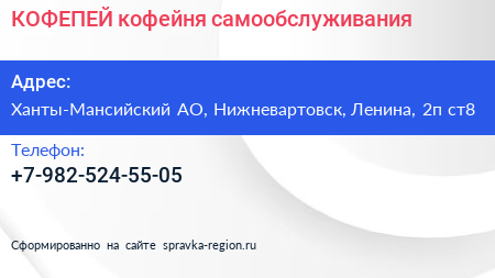 КОФЕПЕЙ, кофейня самообслуживания по адресу Ханты-Мансийский АО, Нижневартовск, Ленина, 2п ст8 в дальнейшем Организация, размещена в следующих категориях: