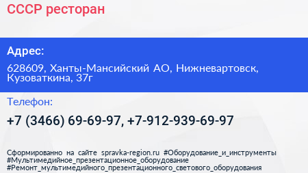 СССР, ресторан по адресу 628609, Ханты-Мансийский АО, Нижневартовск, Кузоваткина, 37г в дальнейшем Организация, размещена в следующих категориях: