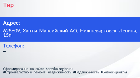 Тир по адресу 628609, Ханты-Мансийский АО, Нижневартовск, Ленина, 15п в дальнейшем Организация, размещена в следующих категориях:
