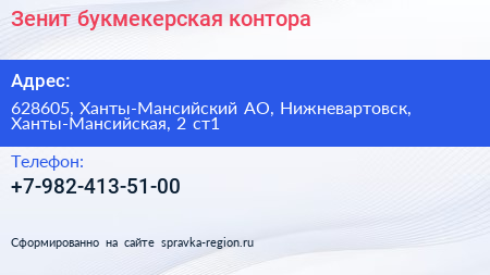 Зенит, букмекерская контора по адресу 628605, Ханты-Мансийский АО, Нижневартовск, Ханты-Мансийская, 2 ст1 в дальнейшем Организация, размещена в следующих категориях: